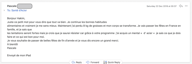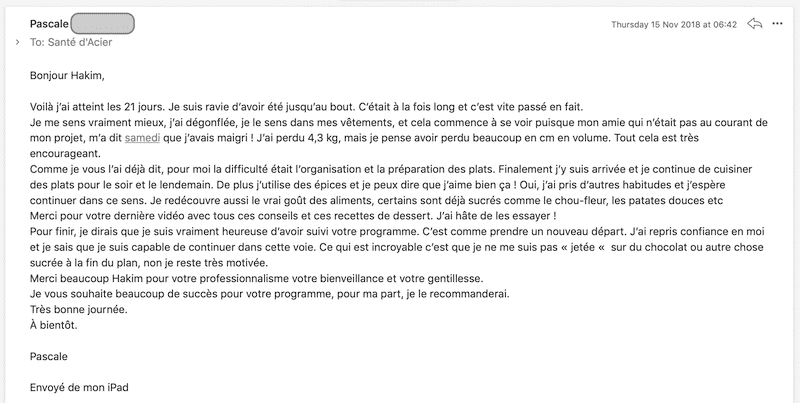 Je sais que beaucoup de personnes vous vendent des régimes, et vous laisse dans la nature, moi ce n’est pas ma philosophie.